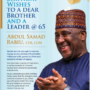 As you celebrate your 65th birthday today, I pray that the Almighty Allah continue to preserve you, bless you with good health for long life and with wisdom to help you be the great leader and mentor that you are.